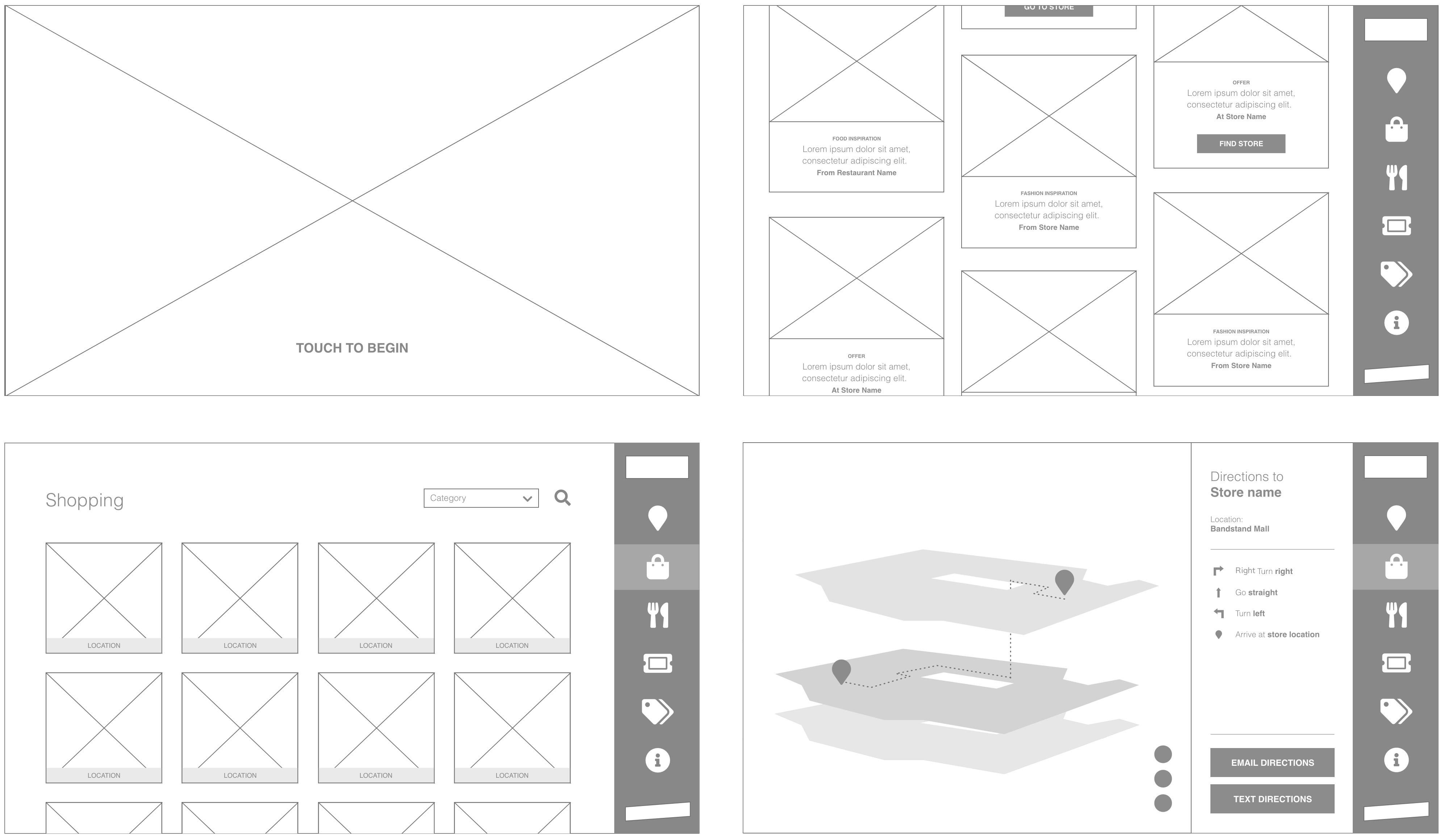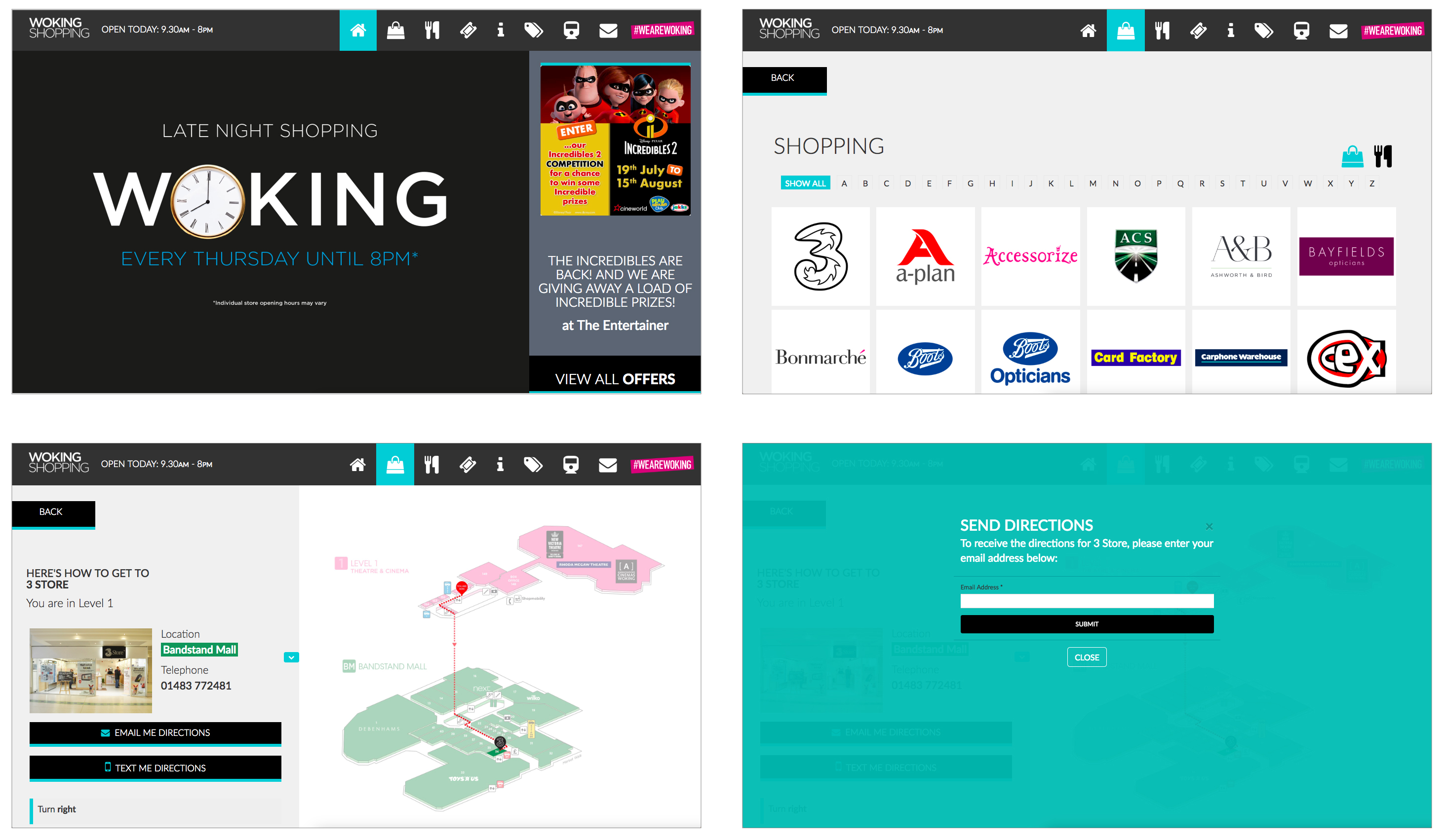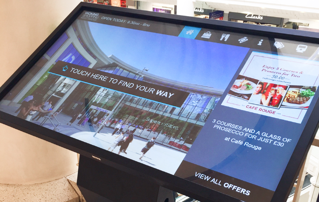 The screens were to work as an information point for visitors as well as a wayfinding tool to direct visitors to locations within the centre.